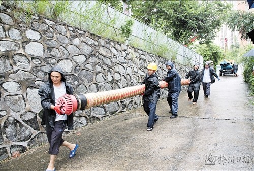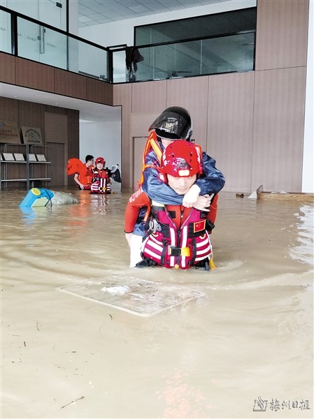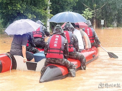 7日凌晨,暴雨如注,在受灾的各镇各村,党员干部纷纷返岗启动防洪预案。在五华龙村镇洞口村凳子桥、安墩地质灾害点,镇村干部及相关部门负责同志冒雨巡逻水位上涨、山体滑坡等情况。凌晨6时,大埔县消防救援大队出动人员前去百侯镇前置执勤,紧急帮助群众转移物资及疏散围观群众。13时,执勤人员又转移至高陂,与高陂镇撤离转移工作组一同负责劝说低洼浸水地带群众转移。截至16 时,梅县区畲江镇党员干部已经泡着水忙碌了整整一天,他们从严重的内涝中转移了37户水浸户和34户山体滑坡户,转移安置了232位村民,其中绝大多数是老人和妇女、儿童。