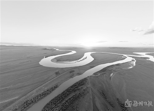 黄河,从巴颜喀拉山的涓涓细流汇聚成浩荡之势,一路奔腾澎湃,由甘肃自西向东进入四川。激荡的黄河在若尔盖草原驻足流连,在阿坝州若尔盖县唐克镇与白河交汇,河水流向突然折回向西北而去,状如“S”形,在无边的绿翠之上勾勒出黄河九曲第一湾。(新华社发)