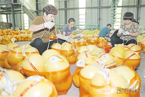 “实地考察了柚园和柚果加工厂后,我们感觉梅州蜜柚的种植条件很好,加工厂的分拣、包装等设备很现代化,增强了我们将柚果推向市场的信心。”来自东莞的广东集顺祥果业有限公司总经理陈鑫说,目前该公司已同梅州蜜柚企业达成合作,计划采购梅州蜜柚鲜果约70万斤,主要销往东莞、广州等地,当前已开始分批发货。