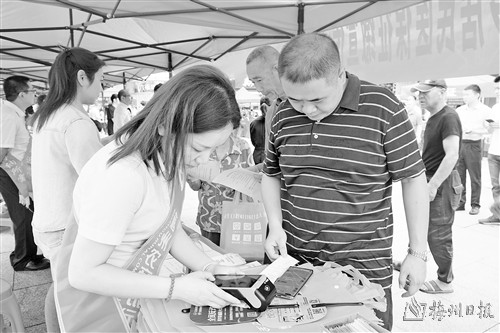 本报讯 (记者黄钰然)9月15日上午,借助2023年“金融消费者权益保护教育宣传月”活动契机,梅州市医保局在梅州客都汇广场开展全民参保暨城乡居民医保征缴宣传活动,提升群众对医保政策和医保征缴的知晓度。