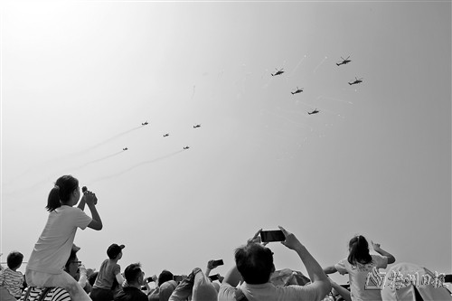 9月16日,陆军“风雷”飞行表演队组成“二十”字样通场。