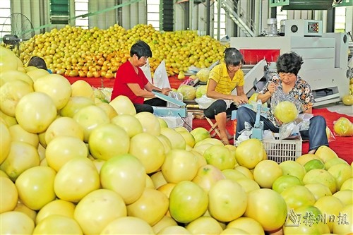 大埔是全省最大的蜜柚种植基地和全国最大的红肉蜜柚种植基地。据悉,今年大埔蜜柚种植面积有21.9万亩,预计产量达31万吨。为打通销售堵点,今年在蜜柚上市前期,大埔县主动对接广州江南批发市场、军威生鲜、粤和兴公司等,建立产销对接渠道,提前确定订单需求,以此打开蜜柚销路,让广大柚果有市场、卖好价。