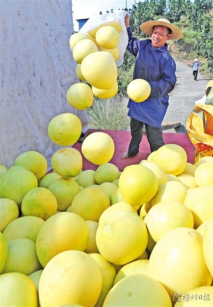 林慈峰告诉记者,今年行情是近三年来最好的,虽然产量有所减少,但价格“美丽”,田头收购价约2.3元/斤。“今年农历是闰二月,等于挂果时间多了近一个月,蜜柚的成熟度也好,水分、口感都比往年要好。”