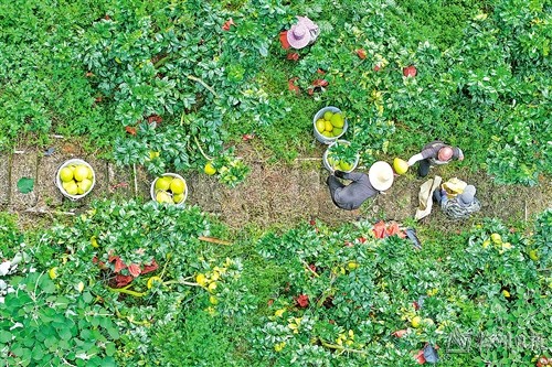 九月金秋至,蜜柚飘香时。眼下,在素有“中国蜜柚之乡”美誉的大埔县,漫山遍野的柚树上挂满了金黄的果实,柚农们正忙着抢抓时节采摘、分拣、运输柚子,销往全国各地。
