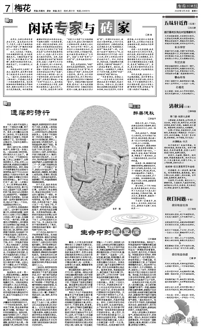 读初中时,学校在离家两公里的镇上。那是二十世纪九十年代末,早读课结束后有一个小时左右吃早饭的时间,离家不远也不近,没有住宿的我们要骑自行车回家吃早饭。天气好时倒不觉得有什么不妥,遇上刮风下雨,特别是冬天,经常浑身湿漉漉的,风里来雨里去。那时,父亲的同学优伯在学校当老师,住在教师宿舍。为了贴补家用,优伯的妻子阿娘常做一些饭菜卖给住宿或者不回家的学生。遇上雨天,优伯早早来到我的教室门口,让我课后去他家吃早饭。阿娘最常做的菜就是酿豆腐,几块小小的酿豆腐一份卖一元五角,可即便如此,也是家境好的同学才能享用的美食。我刚坐下,阿娘就端来热气腾腾的酿豆腐和大米饭,催促我趁热吃,优伯则坐在一旁满脸笑容看着我,说,快吃吧,我天天吃,不用给我留。阿娘做菜的手艺很好,常常早早就卖光了,但只要是雨天,都会给我留上一份酿豆腐。优伯领着微薄的工资,乡下家里有需要赡养的老人,身边有两个比我小的孩子,日子过得清贫。后来,妹妹也上了初中,同样享受着这份不是父母胜似父母的恩情。我知道,优伯是在念及与我父亲当年的同学情,虽然父亲早在我幼年时就离开了这个世界。