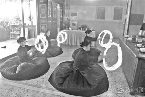 在“开光舞”的动作中,当舞者面对佛像时,高举火把,上照三重天,用火把书写繁体的“開”字,为物体开光,俗称“开天门”;在火把向下舞动时,下照三重地,用火把书写繁体的“閉”字,将地面不吉之物封闭,称为“闭地府”。表现客家人尊崇吉祥,摒弃不吉的文化取向。