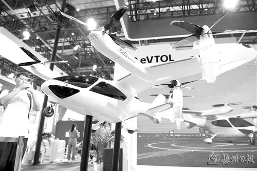 图为2023世界制造业大会上展出的倾转旋翼电动飞机E20eVTOL模型(9月20日摄)。