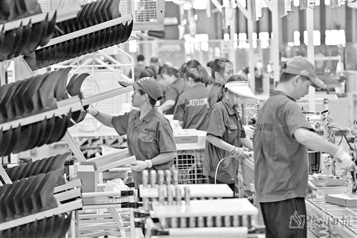 9月21日,在柳州津晶电器有限公司,工人在生产线上作业。