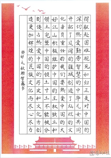 ▲书法 赖智鑫(梅江区龙坪小学 603班) 指导老师:温志文
