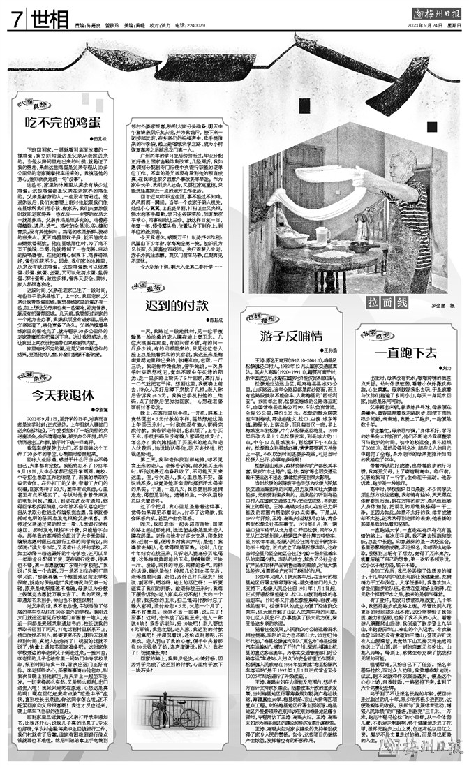 这段时间,父亲在老家已住了一段时间,有些日子没来县城了。上一次,我回老家,父亲让我带些蛋回城,我想县城家里的蛋还有一些,加上想让父母亲也煮一些蛋吃,补充营养,就没有把蛋带回城。几天前,我要经过老家的一个地方去办事,我嫌麻烦没有进家里,后来父亲知道了,被他责备了许久。父亲估摸着县城家里的蛋吃完了,就专程从30多公里外的老家骑摩托车把蛋送下来。这让我很感动,也让我因上两次没把蛋带回来感到很内疚。