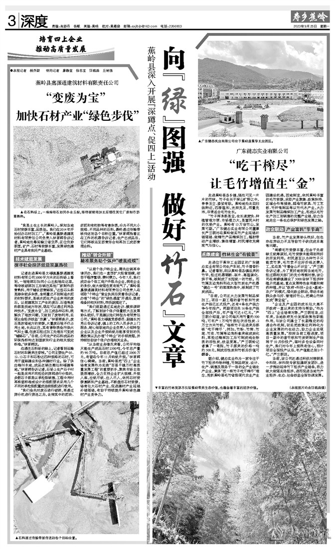 “从当前业务情况来看,公司平均每天能生产成品石材2500吨,今年总产量约90万吨。目前总产值已超过2000万元,有望在今年11月纳统升规。”林晋辉信心满满。当前,蕉岭县把“四上”企业培育发展作为实施“百县千镇万村高质量发展工程”的重要抓手,聚焦市场主体提质增效,全力支持企业扩大规模、升规入库,应统尽统、应入尽入,依托石材资源禀赋和产业基础,不断盘活石材资源,培育壮大石材产业,促进建材产业延链补链强链,有助于持续提升蕉岭绿色建材产业竞争力。