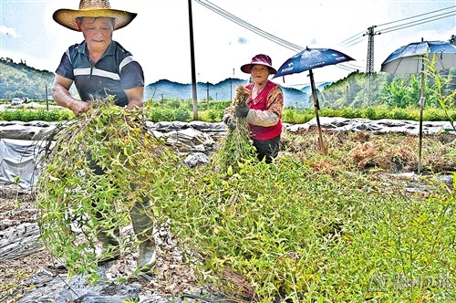 “我种了6亩多的仙人草,种了很多年了,”谢新芬笑道,因为前段时间雨水充足,今年仙人草长势较好,“亩产有1000多斤,我们两个人要近一个月才能收割完。”他说着,抹去了汗水,又继续手上的劳作。仙人草种植管理相对容易,由于收购价稳定,仙人草成了平远县富民产业之一。