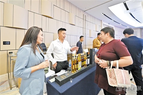 9月26日,第六届进博会参展商代表和天津的采购商代表在活动现场交流。