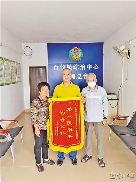 “为人民服务的好公仆。”今年5月,百侯镇居民杨某给镇综治中心送来了一面锦旗。