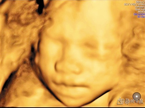 第三次超声检查,孕20-24周+进行系统四维超声检查,即III级筛查,此次筛查是整个孕期最主要及最重要的结构筛查,也称为大排畸。筛查包括胎儿颜面部(唇腭裂)、大脑、小脑、脑室系统、脊椎(脊椎裂、侧弯等)、骨骼(四肢、手掌、足底)、心脏、肾脏、肺、膀胱等发育不良。同时还有机会通过四维图像看到宝宝的样貌,可以有张嘴的样子、嘟嘴的样子或者微笑的样子。