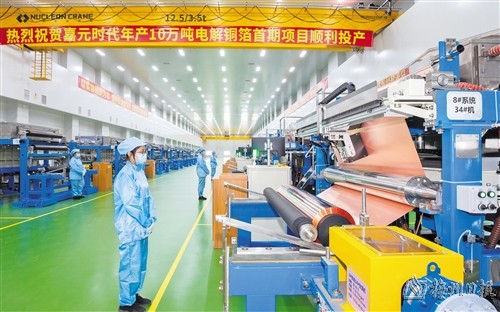 嘉元时代“年产10万吨高性能电解铜箔项目”2022年6月8日动工建设,仅用半年时间实现“拿地即开工”,创造了“梅州速度”。目前,该项目首期年产5万吨电解铜箔项目厂房已完成建设。