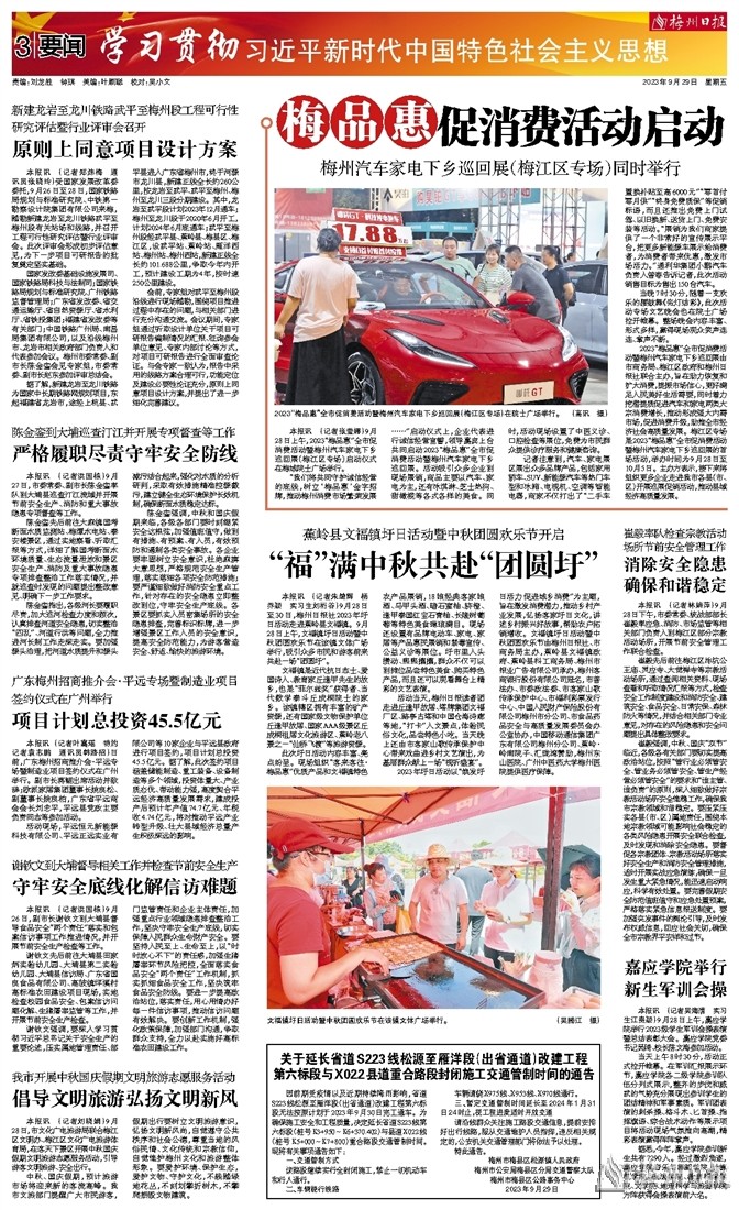 本报讯 (记者张莹娜)9月28日上午,2023“梅品惠”全市促消费活动暨梅州汽车家电下乡巡回展(梅江区专场)启动仪式在梅城院士广场举行。