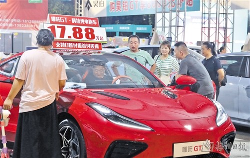 记者注意到,汽车、家电展区展出众多品牌产品,包括家用轿车、SUV、新能源汽车等热门车型和冰箱、电视机、空调等智能电器,商家不仅打出了“二手车置换补贴至高6000元”“零首付 零月供”“终身免费质保”等促销标语,而且还推出免费上门试驾、以旧换新、送货上门、免费安装等活动。“展销为我们商家提供了一个非常好的宣传展示平台,把更多新能源车展示给消费者,为消费者带来优惠,激发市场活力。”通利华集团小鹏汽车负责人曾春告诉记者,此次活动销售目标为售出150台汽车。