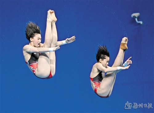 9月30日,中国组合全红婵(右)/陈芋汐在比赛中,她们以375.30分获得冠军。