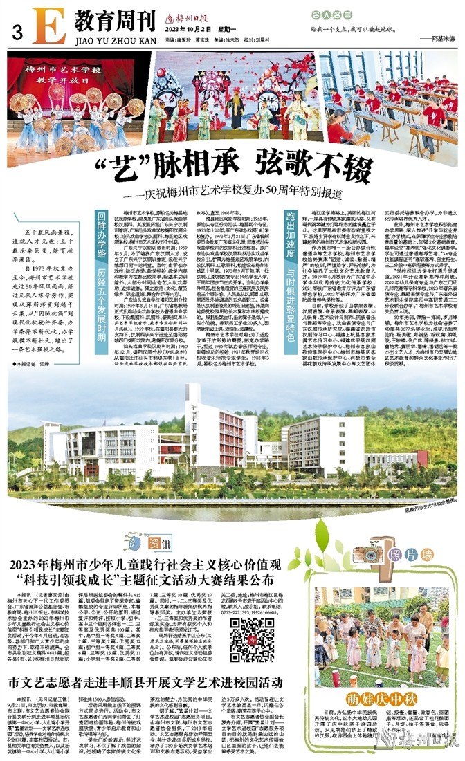 自1973年秋复办至今,梅州市艺术学校走过50年风风雨雨,经过几代人艰辛劳作,实现从薄弱师资到精干云集,从“因陋就简”到现代化软硬件齐备,办学条件不断优化,办学规模不断壮大,蹚出了一条艺术强校之路。