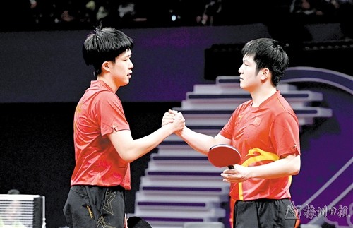 10月1日,樊振东(右)/王楚钦在比赛后庆祝。