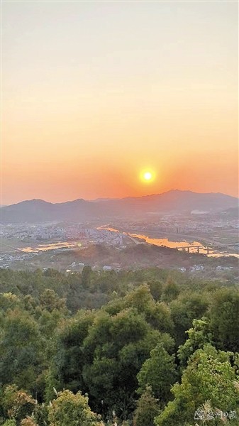 一个周末的下午,我和友人一起,登上了丙村镇的万灵寺,山上树木郁郁葱葱,鸟语花香,空气清新,令人心旷神怡。站在山顶的观景台远眺,丙村镇一览无遗,山峦盘旋,楼房错落有致,清水悠悠。依山傍水的S223线风景优美,是梅县区公认的最漂亮的一条旅游线路,该公路全长30公里,经丙村雁洋,沿途美景目不暇接。此时,夕阳西下,映红了整个天空,一幅美丽的乡村山水画呈现在眼前,微风轻拂,炊烟袅袅,如坠人间仙境。