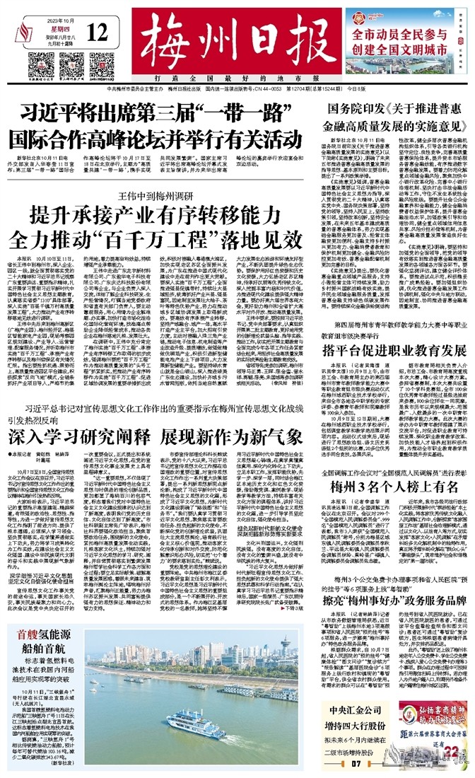 10月7日至8日,全国宣传思想文化工作会议在京召开,习近平总书记对宣传思想文化工作作出的重要指示和全国宣传思想文化工作会议精神在梅州引发热烈反响。