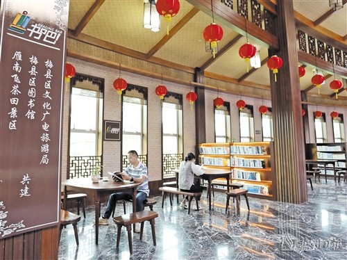 据了解,梅县区已完成5个粤书吧的建设,包括雁南飞茶田景区、又见艳阳天民宿、花间慢主题民宿、客都人家·康养文旅综合体、九龙嶂革命根据地等,由梅县区图书馆为各个粤书吧配置不少于1000册的图书,进一步推动文化和旅游的深度融合发展。“粤书吧纳入了梅县区图书馆的总分馆制体系,实现了图书的统一采编、资源统一调配,可以为群众提供更舒适的环境、更智能的服务以及更多元的活动,用书香让群众更深入了解梅县的历史文化、民俗风情,也为开展全民阅读营造更浓厚的氛围,推动基层公共文化服务焕发新活力,实现粤书吧共建共享共赢。”梅县区图书馆馆长陈浩勤表示。