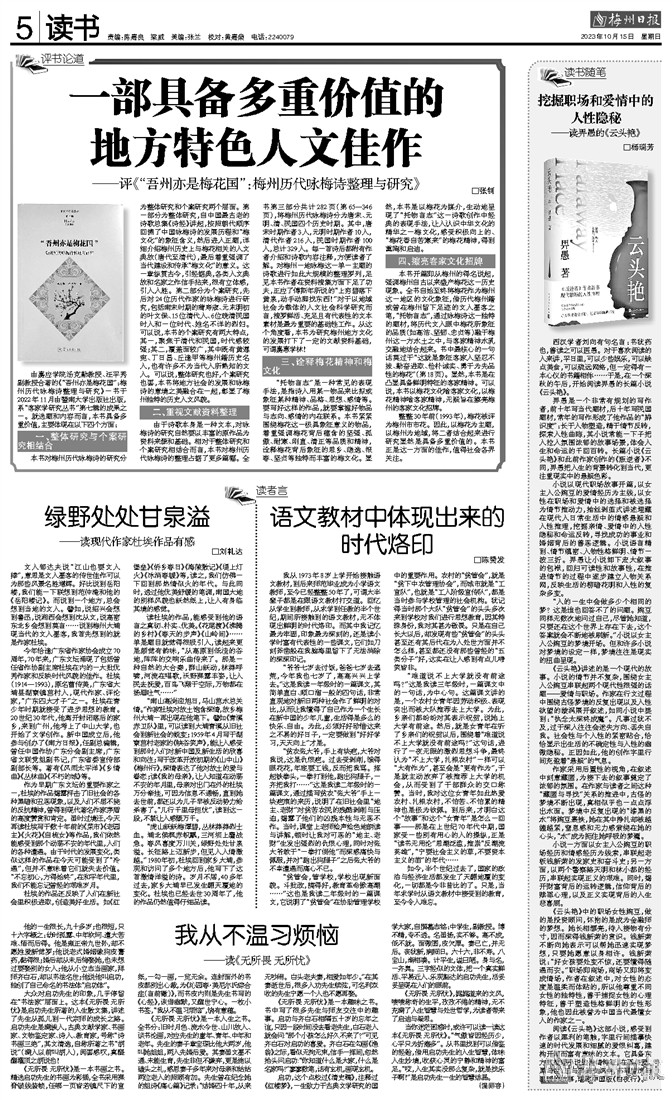 整整30年前(1993年),梅花被评为梅州市市花。因此,以梅花为主题,以梅州为地域,将二者结合起来进行研究显然是具备多重价值的。本书正是这一方面的佳作,值得社会各界关注。