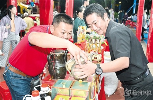 据梅州市渊源客家酒业的负责人沈文育介绍,纯娘酒和黑豆姜娘酒最为畅销,在活动现场,一斤娘酒比平时要便宜3元,加上现在忽冷忽热的天气,正是喝客家娘酒的好时节,很多市民都乐意购买,活动期间,每天都能卖出十几桶娘酒。除了普通的娘酒,一些高品质的黄酒也为市民游客所喜爱,“现在大家生活水平都提高了,比起传统的娘酒,口感好、营养丰富的老黄酒也备受青睐。”沈文育说。