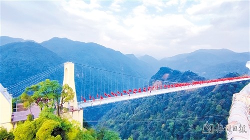 “三百山真的很有意思,很适合全家一起出游,这里风景是很多地方看不到的!”读者团朋友说。此次行程目的地三百山风景区由三百多座山头构成,群岭逶迤,重峦叠障,雄峻秀美。高低差达800多米,方圆数十里渺无人烟,保持着一种原始的山野景象。除了湖光山色,读者团朋友们还体验了一把刺激感,踏上全长330米,最高落差198米的玻璃天桥。只见山间云雾缭绕,横跨两山的玻璃桥仿佛横架云端,恰似人间仙境。