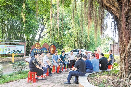 近年来,桃西村坚持定期与不定期相结合,将村里的大事小事集合在榕树下,协商解决。同时,深化党员“双报到”机制,用好村民理事会、老人协会等组织,引导在职党员、干部职工、退休老党员、老教师、法律工作者等多方参与基层治理,群策群力,激发出自治更多活力,解决了一批民生实事,还培育了邻里互助、家庭和睦的文明乡风。“老榕树有几十年树龄,树底下是我们休闲的场所。久而久之,大家逐渐养成了在榕树下商讨的习惯。经过共同协调解决,现在村里生活环境越来越舒适、村民们也越来越团结了。”村民邓瑞娇对“榕树下议事厅”赞不绝口。
