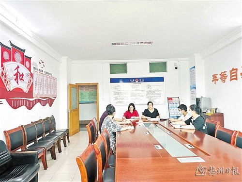 2021年,在梅江区司法局指导帮助下,该镇打造“邓燕红个人调解室”品牌,以点带面辐射延伸,让“和”文化效应与调解员个人能力有效结合,扩大“和”思想影响力,进一步筑牢维护社会和谐“第一道防线”。“主要通过多方位多部门的沟通协调,多次做双方当事人思想工作,从近年法院相关判决案例、政府政策、维持邻里关系等方面着手,并且充分运用客家文化中的‘和’文化来进行协调,最终让事情得以圆满解决。”邓燕红告诉记者,调解室成立至今,共调处纠纷212宗,成功率82%。