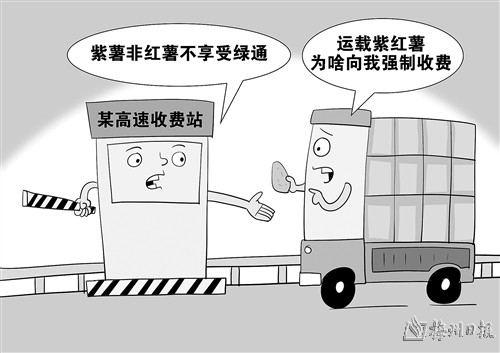 16日,有司机投诉称在运载紫红薯时,在别的地方都享受免通行费政策,但在湖北宜城市南营收费站却被要求缴费。对此,湖北交投襄阳运营公司南营收费站工作人员称,关于此问题,交通运输部早已明确,紫红薯不属于《鲜活农产品品种目录》中的范畴,不属于享受“绿色通道”优惠政策的农产品,“虽然红薯不收费,但紫薯不是红薯,我们照章办事。” 朱慧卿/图