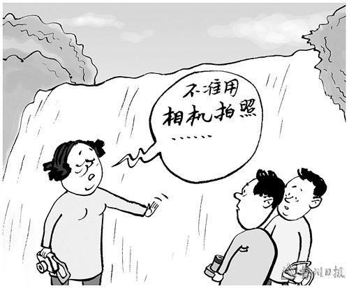近日,陈先生和多名摄影师带着客户在贵州黄果树景区拍照时,遭几个手持相机的阿姨阻拦,说他们用相机拍照的话会抢走生意,“你们即便要拍照,也只能用手机”。对此,景区回应称,与游客发生争执并阻止拍照的人员为景区内摄影经营户。已对涉及的摄影经营户进行批评教育并作出停业整顿处理,同时对景区内摄影等业态开展专项整治。王铎/图