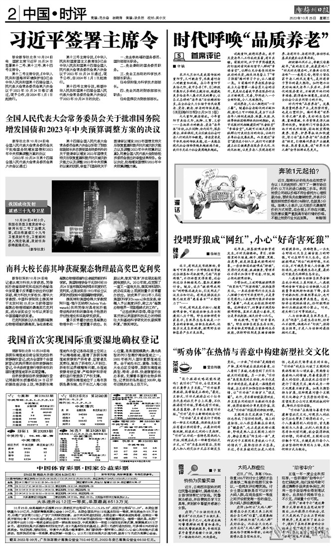 第十四号主席令说,根据中华人民共和国第十四届全国人民代表大会常务委员会第六次会议于2023年10月24日的决定: