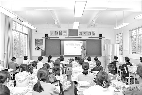 同样,在蕉岭县徐溪中学,记者看到,新改造的教室宽敞明亮,浓浓的现代化气息扑面而来。老师正用新的教学设备为学生上着语文课。