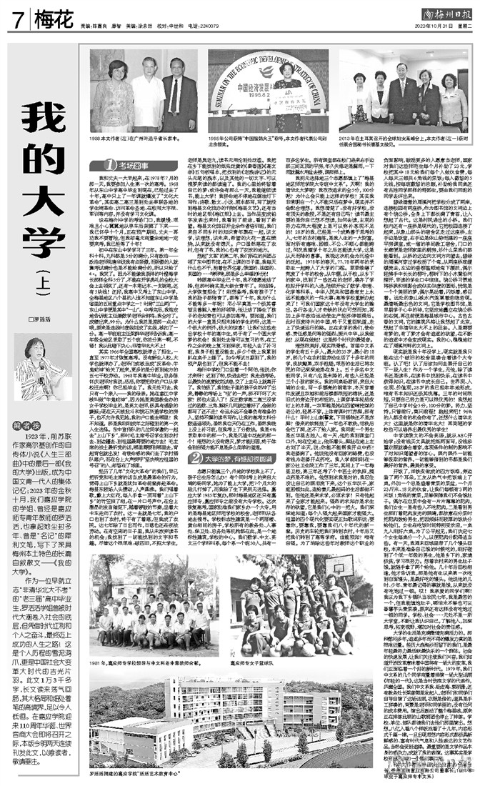 1923年,前苏联作家高尔基创作的自传体小说《人生三部曲》中的最后一部《我的大学》出版,成为中国文青一代人的集体记忆;2023年的金秋十月,我们嘉应学院的学姐、曾经是嘉应师专青年教师的罗活活,也拿起她尘封多年、曾是“名记”的犀利文笔,写下了深具梅州本土特色的长篇自叙散文——《我的大学》。