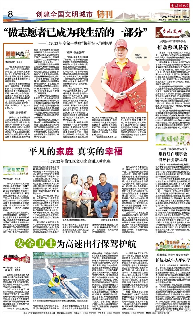 今年47岁的甘亮丁,自1997年参加工作后就进入高速公路施工管理行业,2009年回到梅州参与梅大高速建设管理工作,2015年至今投身到省交通集团旗下单位担任高速公路营运管理工作,目前是梅平高速的养护工程师。