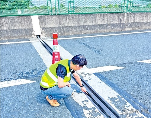 今年9月,台风过境以后,考虑到极端天气引发的强降雨、洪水等对梅平公司辖区的通航桥梁影响较大,甘亮丁立即组织人员对辖区通航桥梁进行安全排查。当检查小组来到S12梅龙高速梅江大桥南岸桥下检查时,突然听到从该桥一桥墩上方桥梁伸缩缝处传来“咣啷、咣啷”的响声。这不寻常的声音,引起了他的警觉。因为按正常的情况,车辆经过桥梁伸缩缝时,应该是“噗噗”并带点沉闷的声音,不应该是“咣啷”的响声。他立即打电话给公司负责桥梁养护的工程师,进行进一步的检查。果然,随后的桥面检查证实了他的判断是对的。在该道伸缩缝主车道靠近超车道的位置,型钢的中梁已经断裂,车辆通过时中梁晃动厉害并发出“咣啷、咣啷”的响声。猜测得到证实后,他马上上报,并对该道已经使用超过12年的伸缩缝型钢进行了更换。平常,甘亮丁就是以这种耐心、细心,在丰富经验的加持下,更好地辨别、排查道路“病害”的。