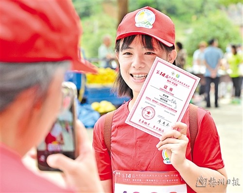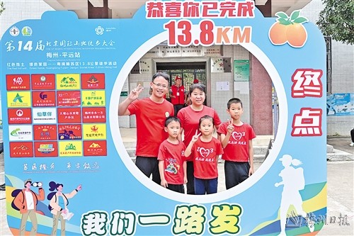 参加此次活动的徒步爱好者来自各行各业、各个年龄段。他们有的是常年参与徒步的“资深”选手、组团参赛的初中生、一家老小全出动的家庭组合选手,也有带着宠物一起在户外奔跑的爱宠选手……他们沿着蜿蜒的山间小路前行,沿途随处可见错落有致的客家民居、恬静秀美的田园风光,观音宫、风雨亭、红色古驿道、柚树园、牛角岃下祖屋、苏维埃农会旧址、文昌阁、红色蓬船工会旧址等红色遗址和文物古迹,也让徒步爱好者不时停下脚步拍照合影留念,处处洋溢着轻松欢快的气氛。