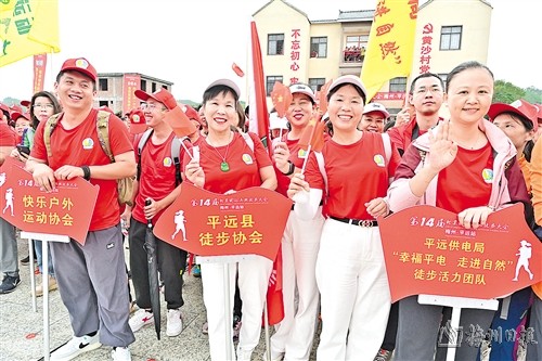 苏区橙乡逢盛事,大美平远迎客来。10月29日,第十四届北京国际山地徒步大会梅州·平远站活动启动,来自粤闽赣三省17个县(市、区)的1000多名徒步爱好者用脚步丈量橙乡大地,感受美丽乡村淳朴民风,体验红色革命历史文化,畅享挑战自我的激情与快乐。