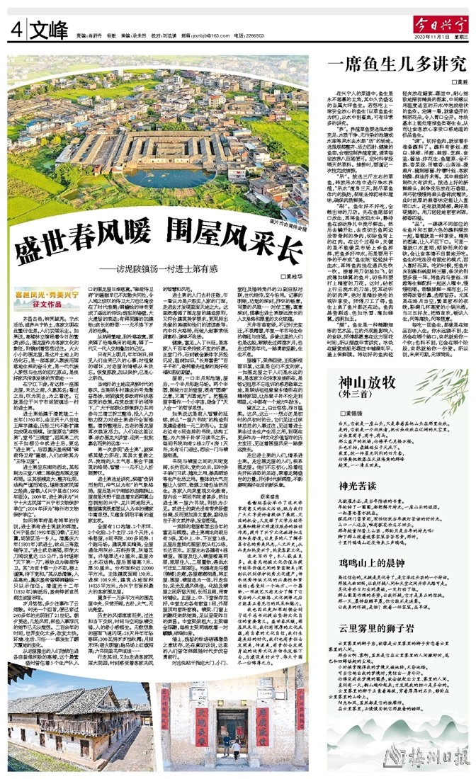 屋檐下,梁燕回绕,正衔新枝固旧巢,这里是它们不变的家。一如围龙屋之于人们是永远的根,是客家文化传承发扬所在,是铭记祖恩不忘祖训的感恩敬奉之地,是联结祖祖辈辈乡情所在的精神家园,让后辈子孙不论走到哪里,心中都有一个地方叫故乡。