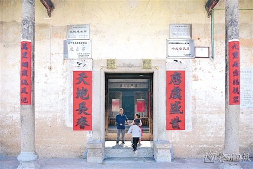 从老屋搬出的人们陆续住进各自装修别致的高楼,这个最繁盛时曾住着5个生产队人口的围龙屋日渐落寞。“御前侍卫府”的匾额早已不知散失何处,令人闻之惊叹的侍卫大刀也已淹没在了时代浪潮;铜蟾蜍的神奇更成了遥远的传说;斑驳的墙壁,大火遗留的痕迹;有碍观瞻的加建物;疯长的野草……无不烙下岁月的沧桑。