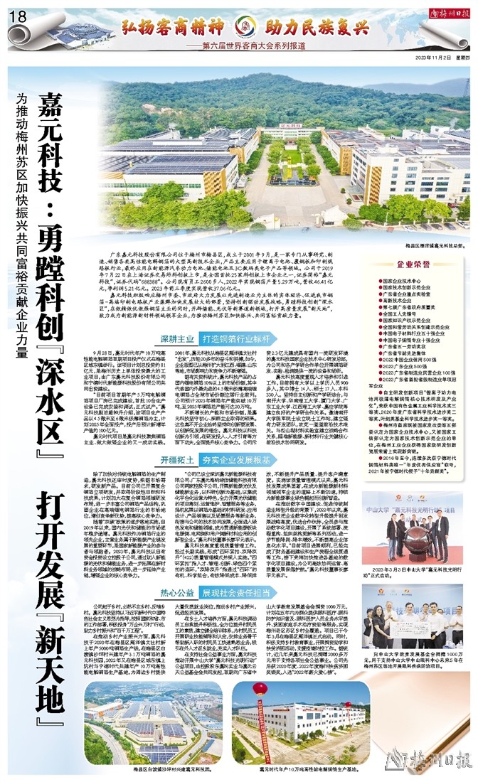 嘉元科技积极响应梅州市委、市政府大力发展以先进制造业为主体的实体经济、促进我市铜箔-高端印制电路板产业集群加快发展壮大的部署,坚持创新驱动发展战略,勇蹚科技创新“深水区”,在做精做优做强铜箔主业的同时,开辟储能、光伏等新赛道新领域,打开高质量发展“新天地”,致力成为新能源新材料领域领军企业,为推动梅州苏区加快振兴、共同富裕贡献力量。