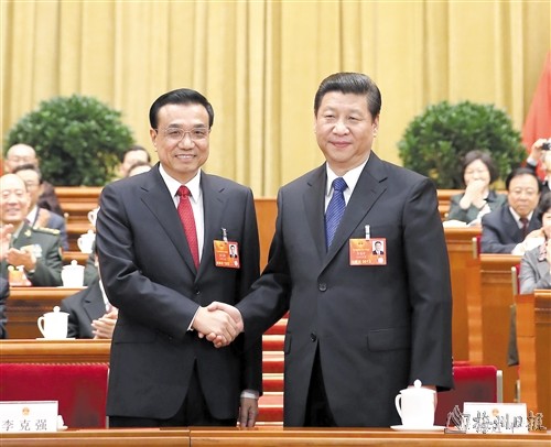 2012年11月,李克强同志在中共十八届一中全会上再次当选为中央政治局委员、常委。2013年3月,在十二届全国人大一次会议上,他被任命为国务院总理,同月起任国务院党组书记。面对错综复杂的国内外形势,在以习近平同志为核心的党中央坚强领导下,坚持稳中求进工作总基调,保持战略定力,着力完善宏观调控,注重预调微调,注重定向调控,着力推进供给侧结构性改革,适度扩大总需求,推动实现更高层次的供需动态平衡。加快新旧动能转换,大力发展新兴产业,改造提升传统产业,深入开展“互联网+”行动,推进制造强国建设,实施工业强基、智能制造、绿色制造等重大工程,促进经济结构加快优化升级。引导金融支持实体经济,加强普惠金融服务。坚持创新引领发展,实施创新驱动发展战略,完善支持政策,营造鼓励创业创新的良好环境,着力激发社会创造力。坚持对外开放的基本国策,在上海等省市设立一批自由贸易试验区,扎实推进“一带一路”建设,显著提升开放型经济水平。深入实施区域协调发展和新型城镇化战略,推动新的增长极增长带加快成长,推动全面深化农村改革,促进农村一二三产业融合发展,增强城乡区域发展协调性。坚持以人民为中心的发展思想,着力保障和改善民生,推进精准扶贫、精准脱贫,实施积极的就业政策,坚持教育优先发展,促进城乡教育均衡发展,加快推进分级诊疗和医联体建设,建立统一的城乡居民基本养老、医疗保险制度,完善社会救助制度,加快构建社会保障安全网,人民群众获得感不断增强。坚持人与自然和谐发展,着力治理环境污染,生态文明建设取得积极进展。推动依法全面履行政府职能,落实中央八项规定精神,坚持“约法三章”,努力建设人民满意的法治政府、创新政府、廉洁政府和服务型政府。