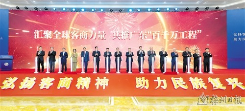 11月3日,第六届世界客商大会举行全球客商支持广东“百县千镇万村高质量发展工程”(以下简称“百千万工程”)启动仪式。在梅州主会场参会的众多客商纷纷表示,将抢抓广东实施“百千万工程”重大机遇,凝聚客商共识,汇聚客商力量,展现客商作为,为推动梅州苏区加快振兴共同富裕、广东高质量发展作出客商贡献。