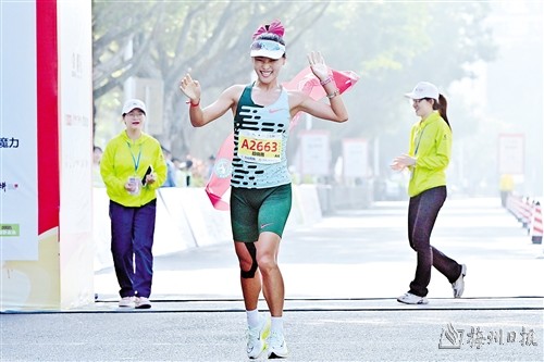 “我是在2015年入学嘉应学院,也是在这一年开始跑马拉松的,这场半马既是我冲刺的第100个半马冠军,也恰逢母校建校110周年,我就想把这第100个冠军的冲刺留在梅州,为母校建校110周年献礼。”赛后,殷晓雨手捧鲜花,激动地说。