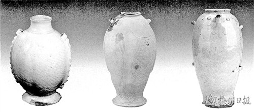 实际上,国内还有长沙窑酱褐色釉双鱼壶、越窑青釉双鱼壶,以及唐三彩双鱼壶等的考古发现。它们与水车窑双鱼壶的造型均大致相同,一般都认为是模仿鲤鱼造型而来 ,并接受了西方金银器影响后出现的瓷器新品种,同时也反映出这种双鱼造型壶式,在晚唐至五代时是一种颇为流行的产品,不少窑口均有生产和销售,但此后就少见了。而梅县水车窑的生产恰好赶了这么一趟潮流时尚。这不仅让今天的梅州人深感惊讶,也给大家提出了一个十分有趣的问题:为什么那一时代的人们都喜欢双鲤鱼这样一种壶式?