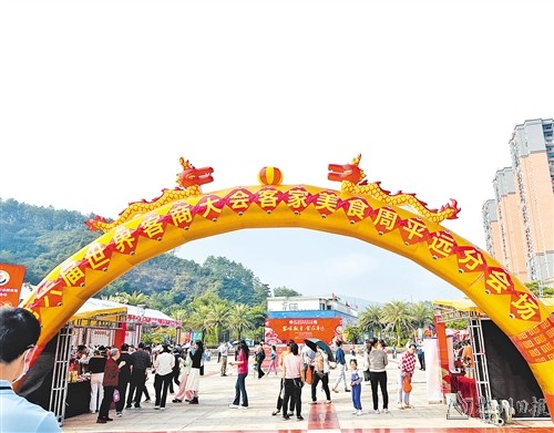 脐橙、灵芝、平远黄粄、浸姜蒜、金柚……上午9时,在平城花园广场人流如潮,热闹非凡,以“客味飘香·食在平远”为主题的第六届世界客商大会客家美食周平远分会场活动在此举办,此次活动旨在以美食为媒,加强经济文化互动、人文商道共荣,充分展示和推动客家饮食文化,让世界爱上客家味,让客家味香飘世界。